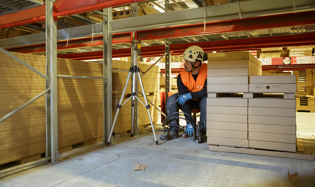 We commonly work on sites that have high racking and use autonomous machines to move goods. The impact on racking alignment from slight movement in the floor levels is increased with the height, in some cases machines have been known to fail. Our system uses precise laser monitoring to ensure the floor is brought back to within 0.25mm tolerance, thus enabling the continued use of autonomous machines.